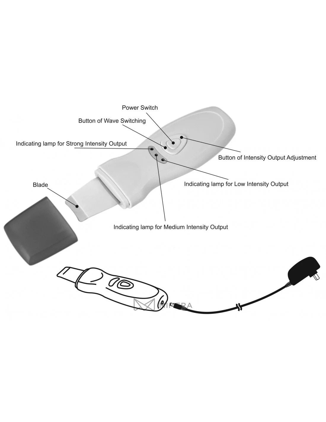 Portable Skin Scrubber works on the basis of ultrasonic waves, which emanate from the metal head, break up high water molecules and thus cleanse the skin. This function performs cavitation peeling. It is a non-invasive and painless cleaning procedure based on cavitation, which allows the effective removal of dead cells from the surface of the epidermis.