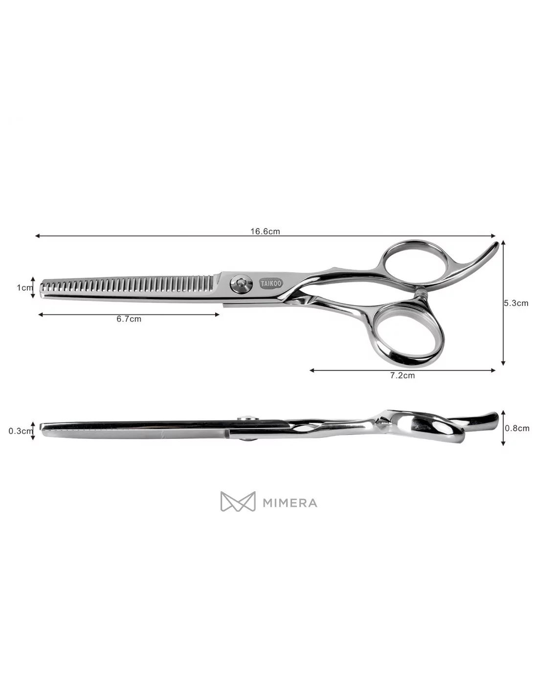 This ergonomically shaped modeling scissors are an optimal tool for the professional hairdresser. The cutting blade makes it easy to thin out the hair.