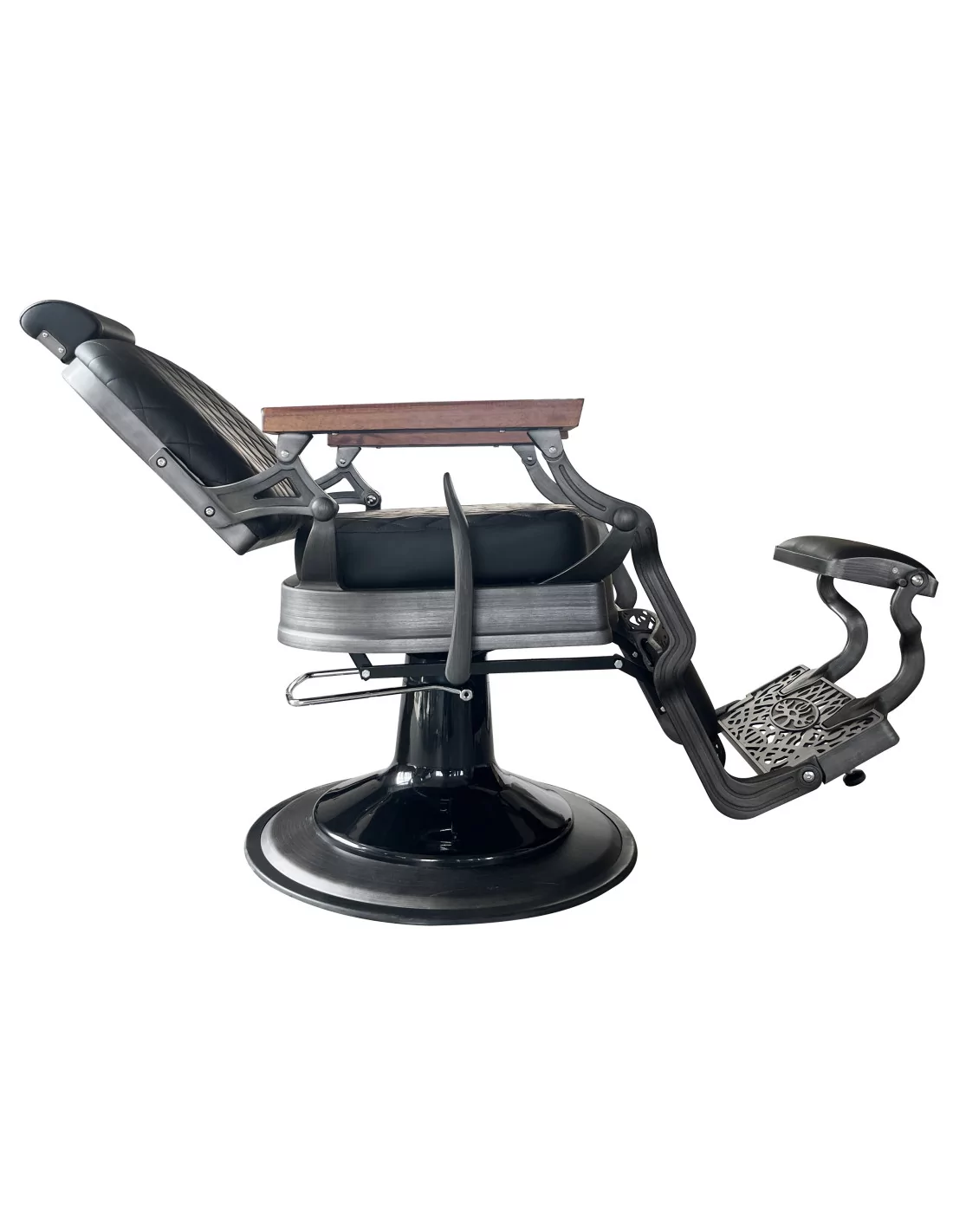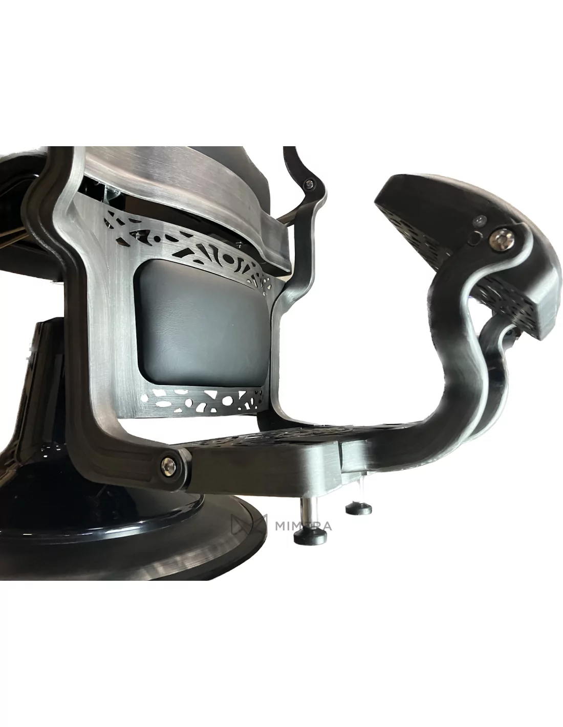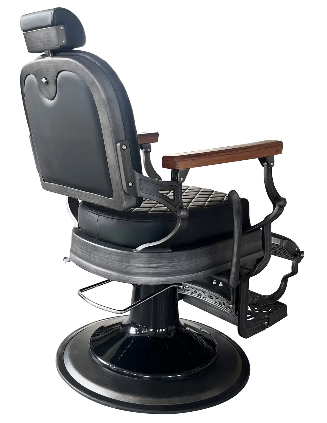 Retro barber chair CEZANNE GREY is a true masterpiece. Its solid stainless steel body in dirty grey with a large solid base is extremely stable and well-balanced