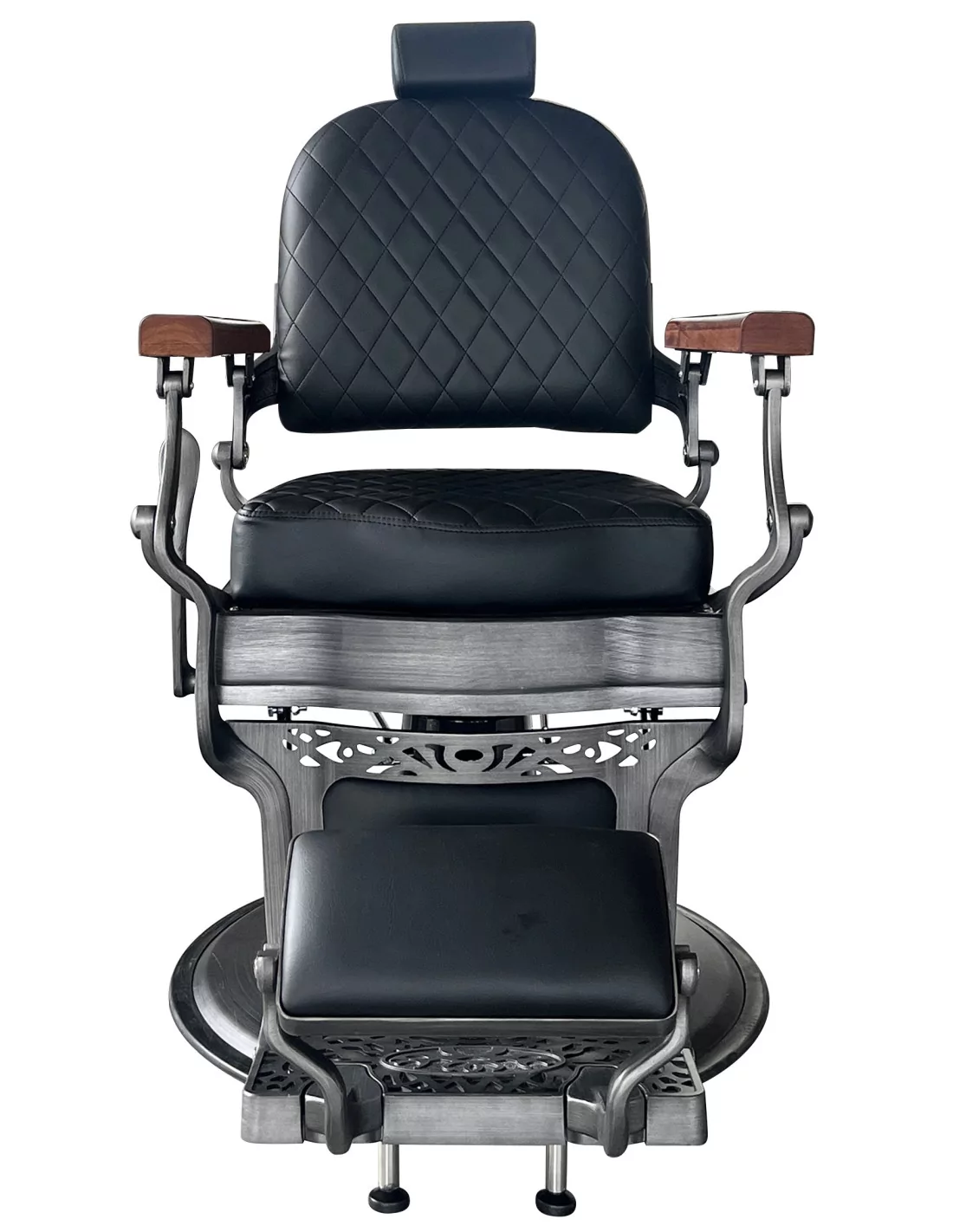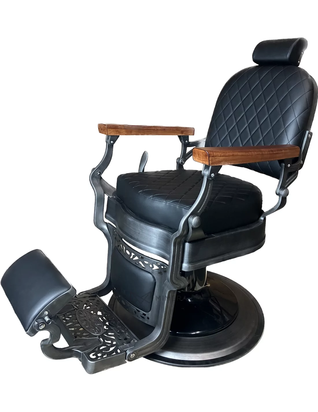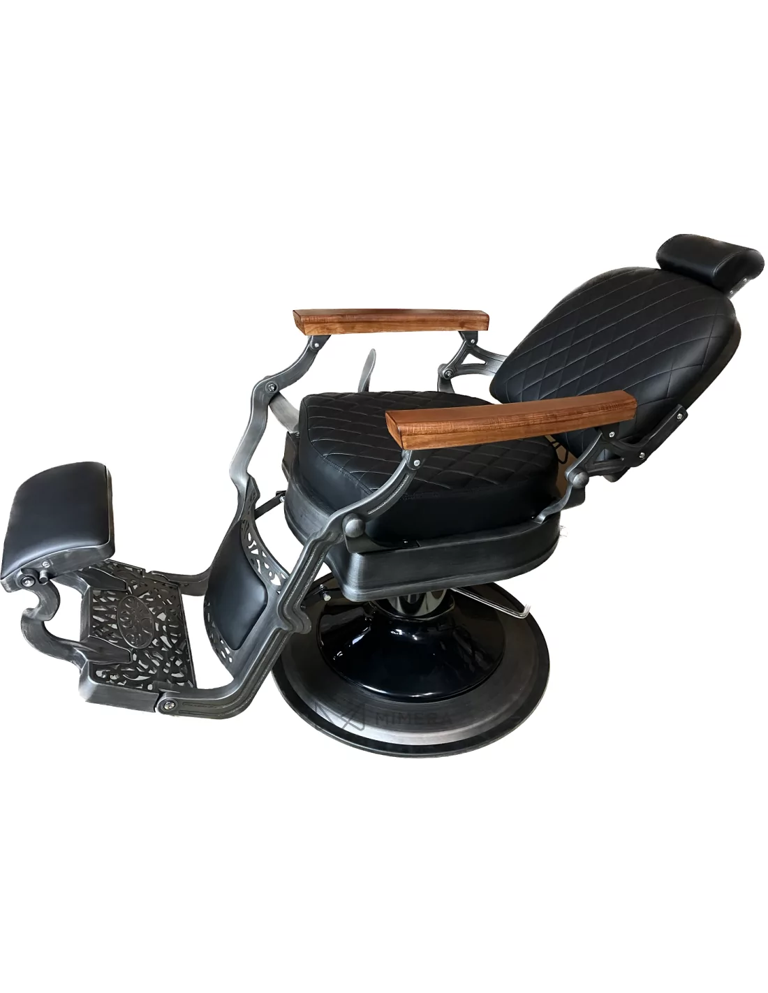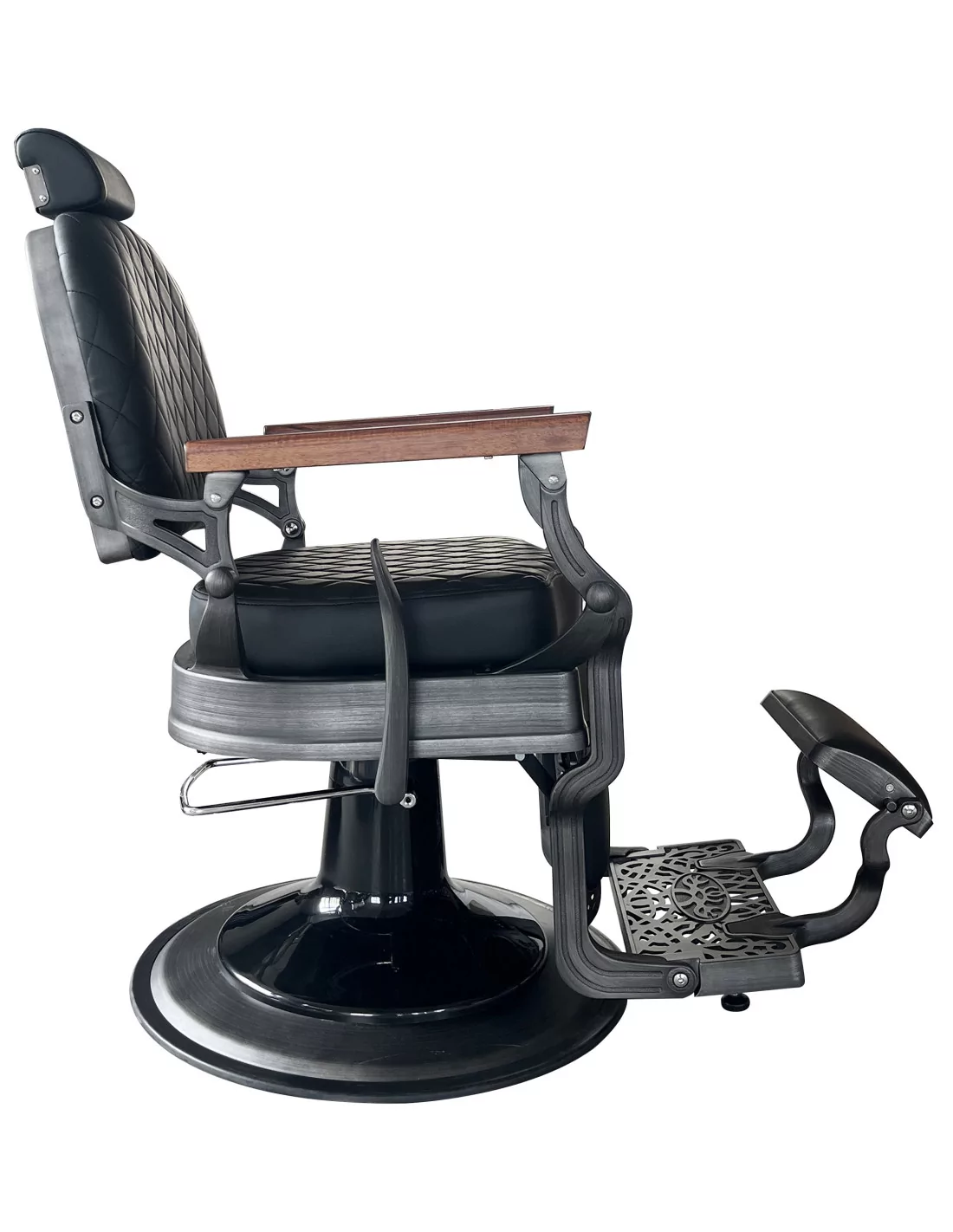Retro barber chair CEZANNE GREY is a true masterpiece. Its solid stainless steel body in dirty grey with a large solid base is extremely stable and well-balanced