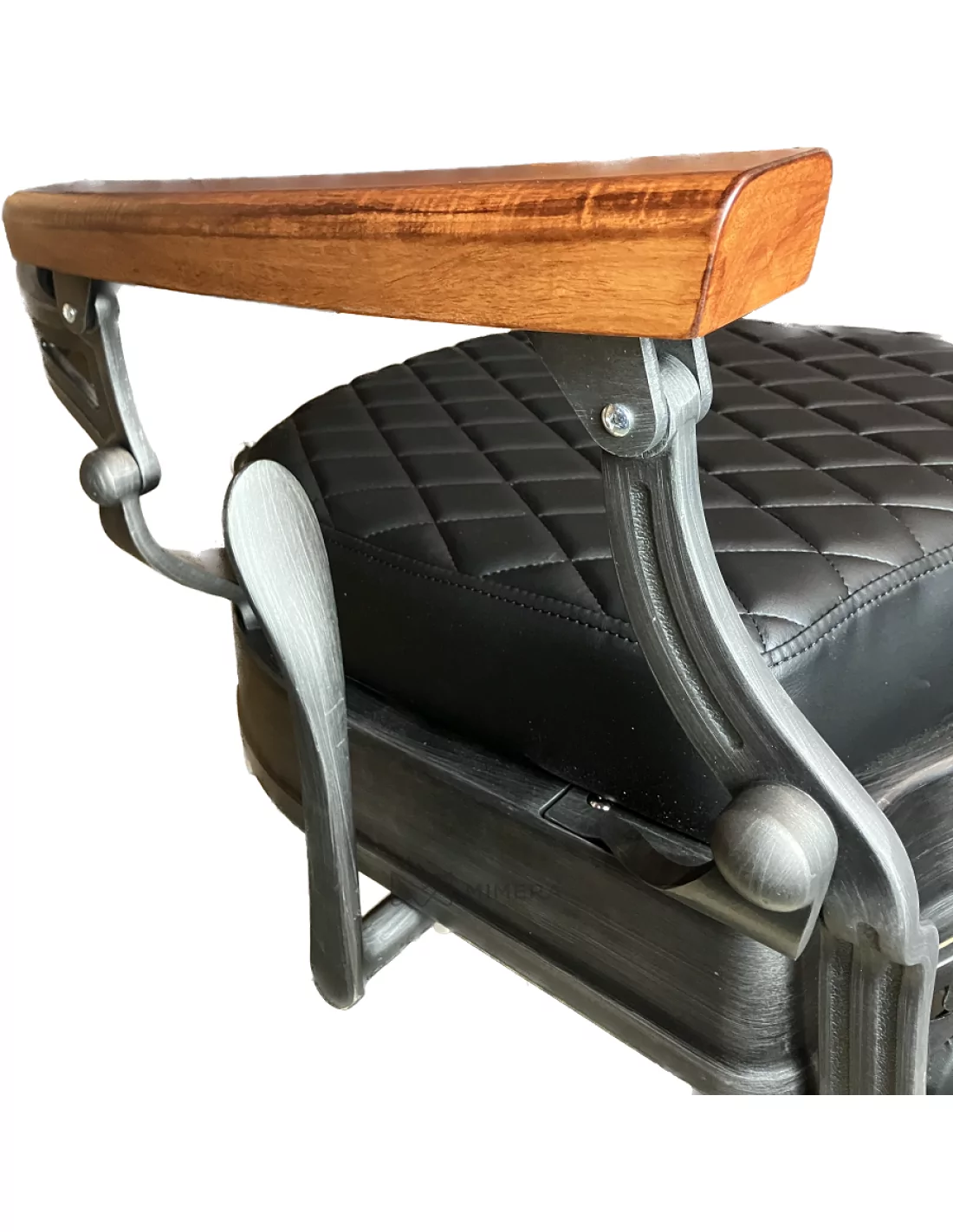 The grey steel frame combined with black padding creates and wooden armerests is the perfect blend of modern and retro style.