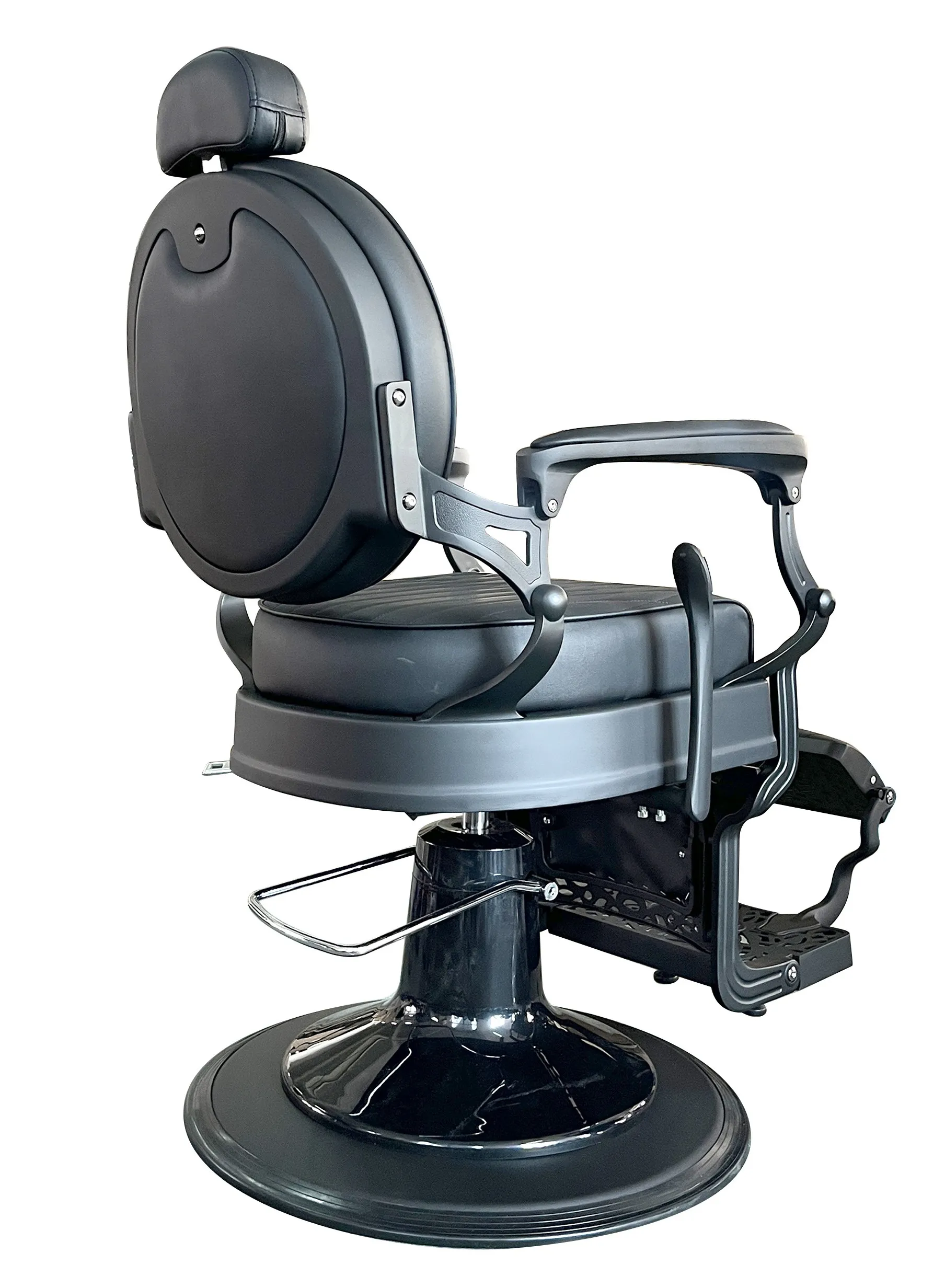 The RETRO Barber Chair RODIN BLACK X is a distinctive, luxurious model with an iconic retro design. Its massive construction made of stainless steel in matte black, combined with a large, solid base, ensures exceptional stability and a professional look.