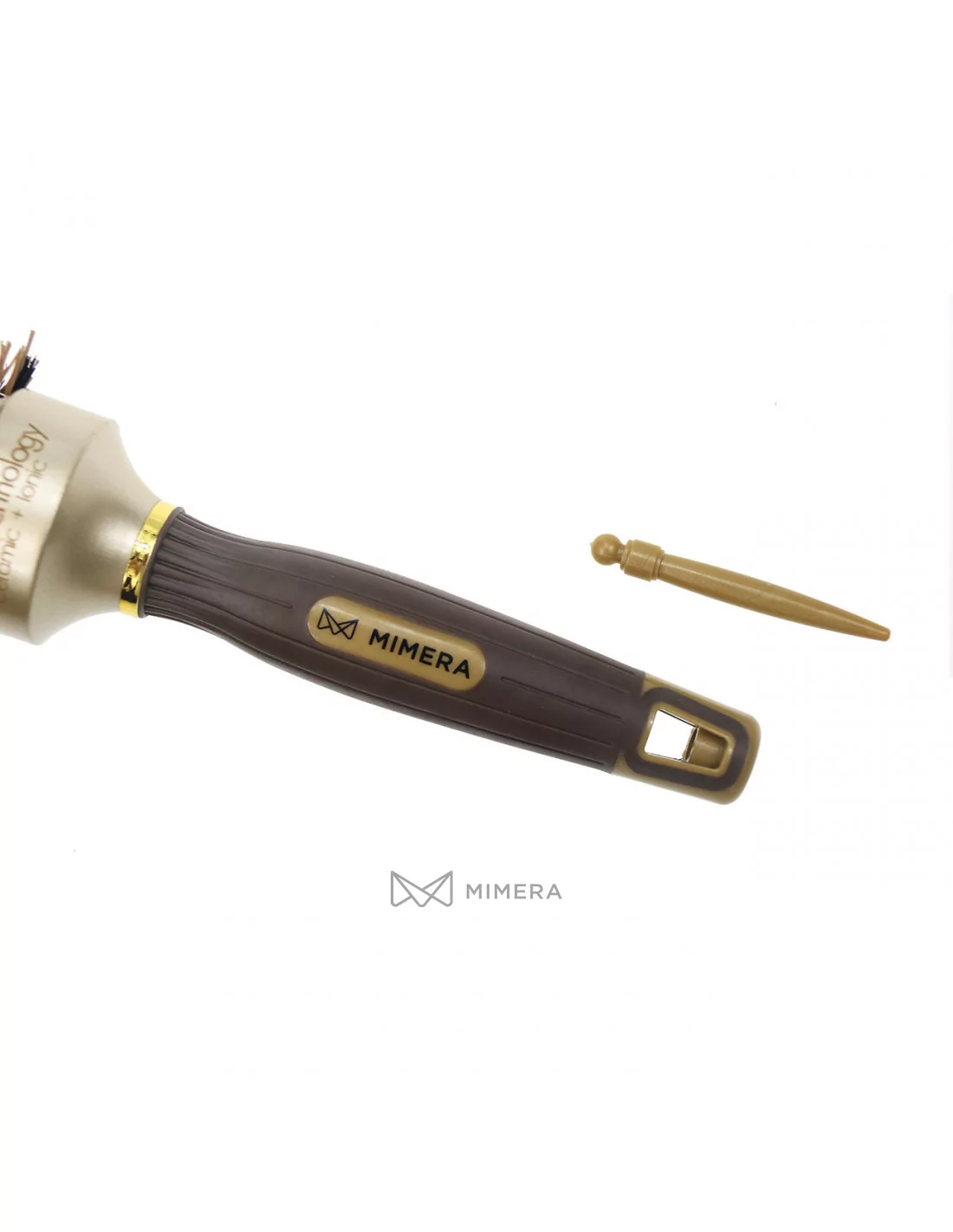The ceramic-coated aluminum brush body distributes and stores the foehn heat evenly over the entire brush head in order to achieve a quick styling. Moreover, rounded, heat-resistant nylon bristles protect and massage the head skin.