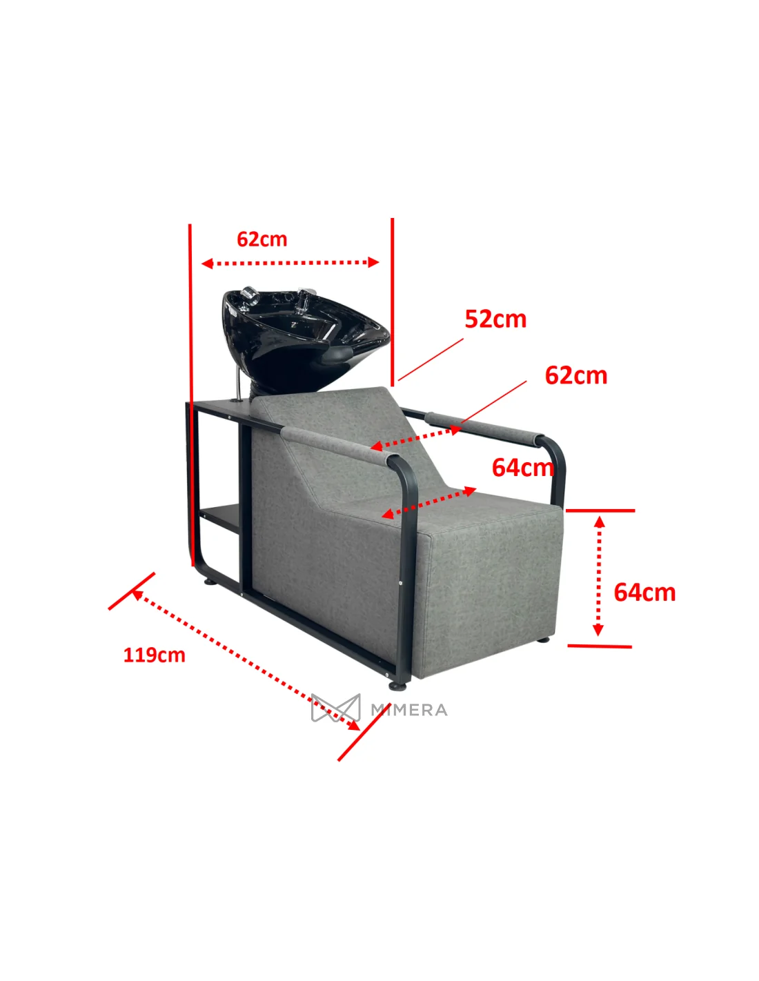 With a total length of 119 cm, a height of 64 cm, and a width of 62 cm, the chair is suitable even for smaller salons without compromising on comfort and functionality.