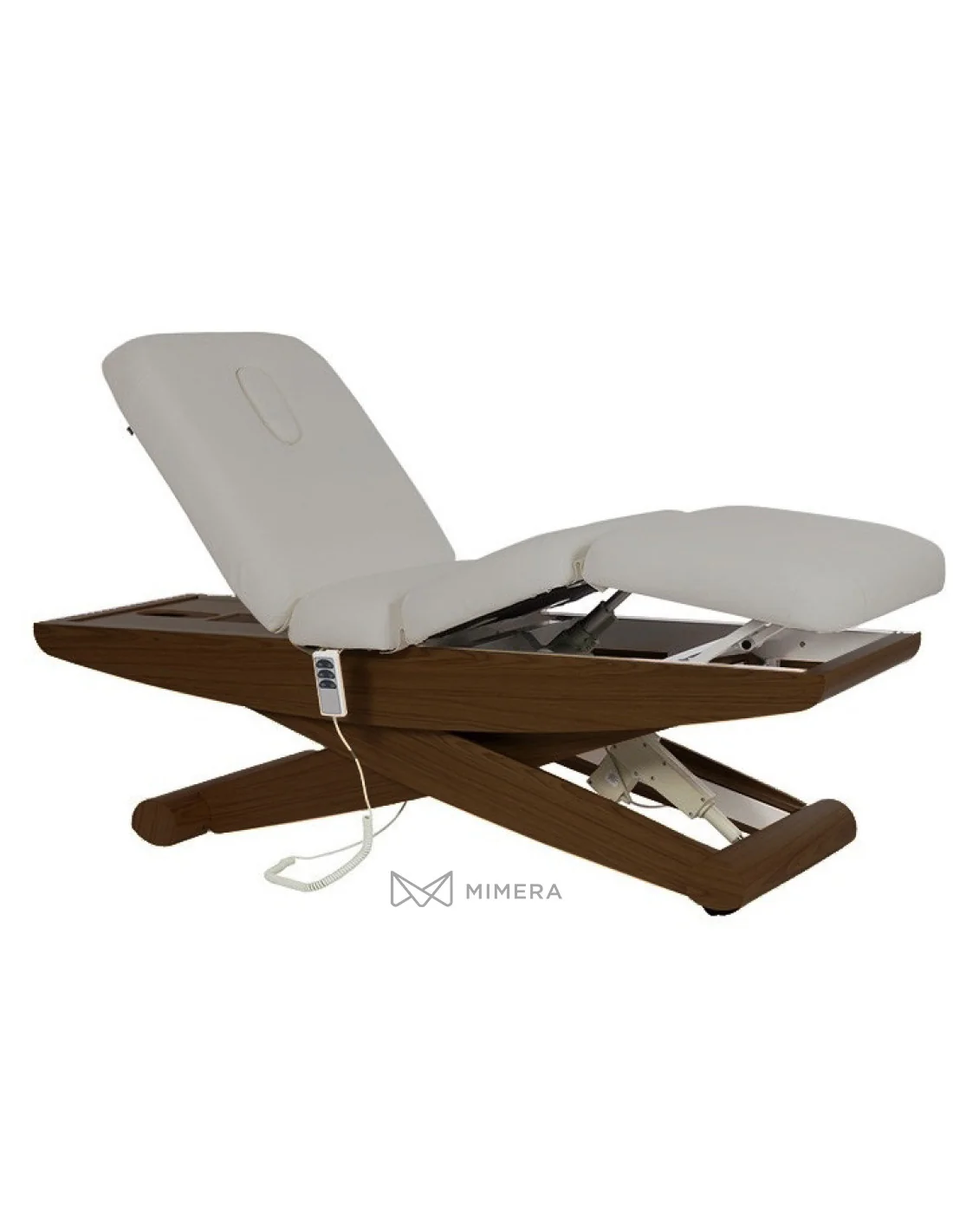 Comfortable Wellness bed with 3  silent made motors for the adjustment of the height, backrest, and seat tilt. It is operated using the hand-held remote control provided. The bed has its unique adjustment of height from 61 cm to 95cm.