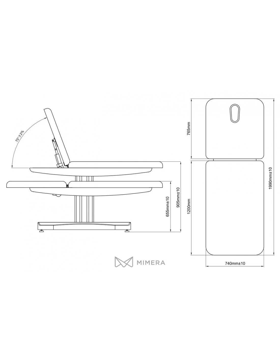 The couch is up to 74 cm wide, has no armrests and includes a face cut. It is designed especially as a comfortable wellness bed and for wellness treatments, but it can also be used very well for cosmetic treatments. The maximum height of the bed is up to 90,5 cm. High-quality PU upholstry provides high comfort and is easier to clean.