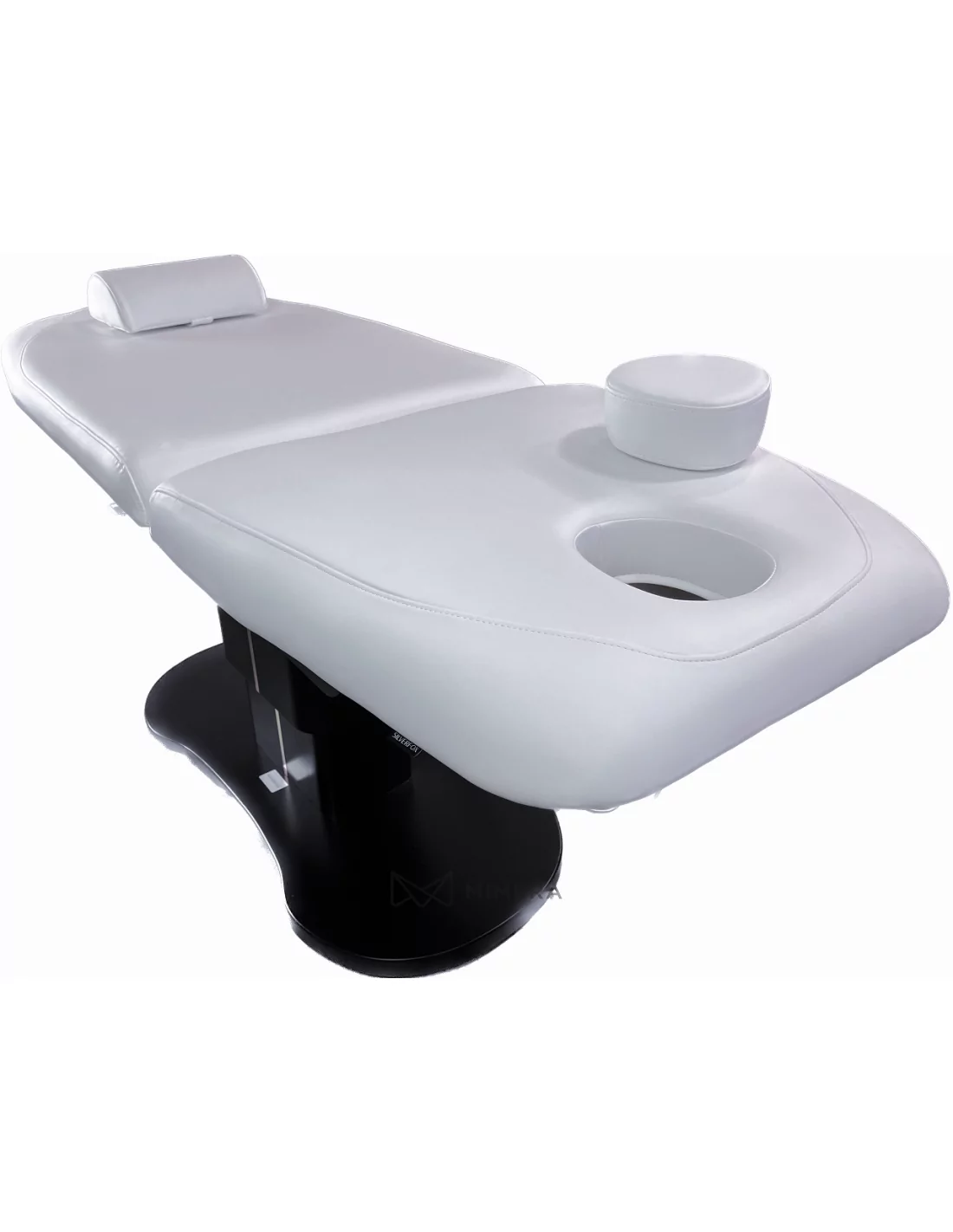 It is primarily designed as a comfortable wellness bed for wellness treatments or as a massage bed, but it is also very suitable for cosmetic treatments.