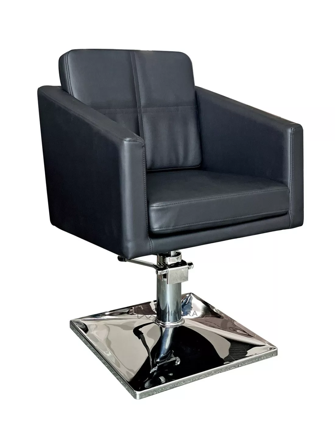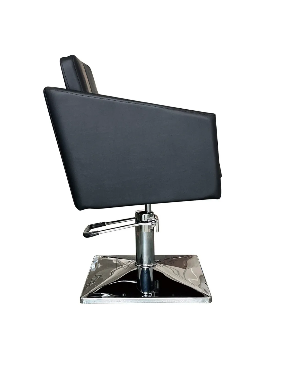 The styling chair CUBE CHROME - matt black is a stylish and practical piece of furniture that fits perfectly into any modern hair salon. It stands out for its simple and elegant design, high-quality craftsmanship, and comfort for both the client and the stylist.
