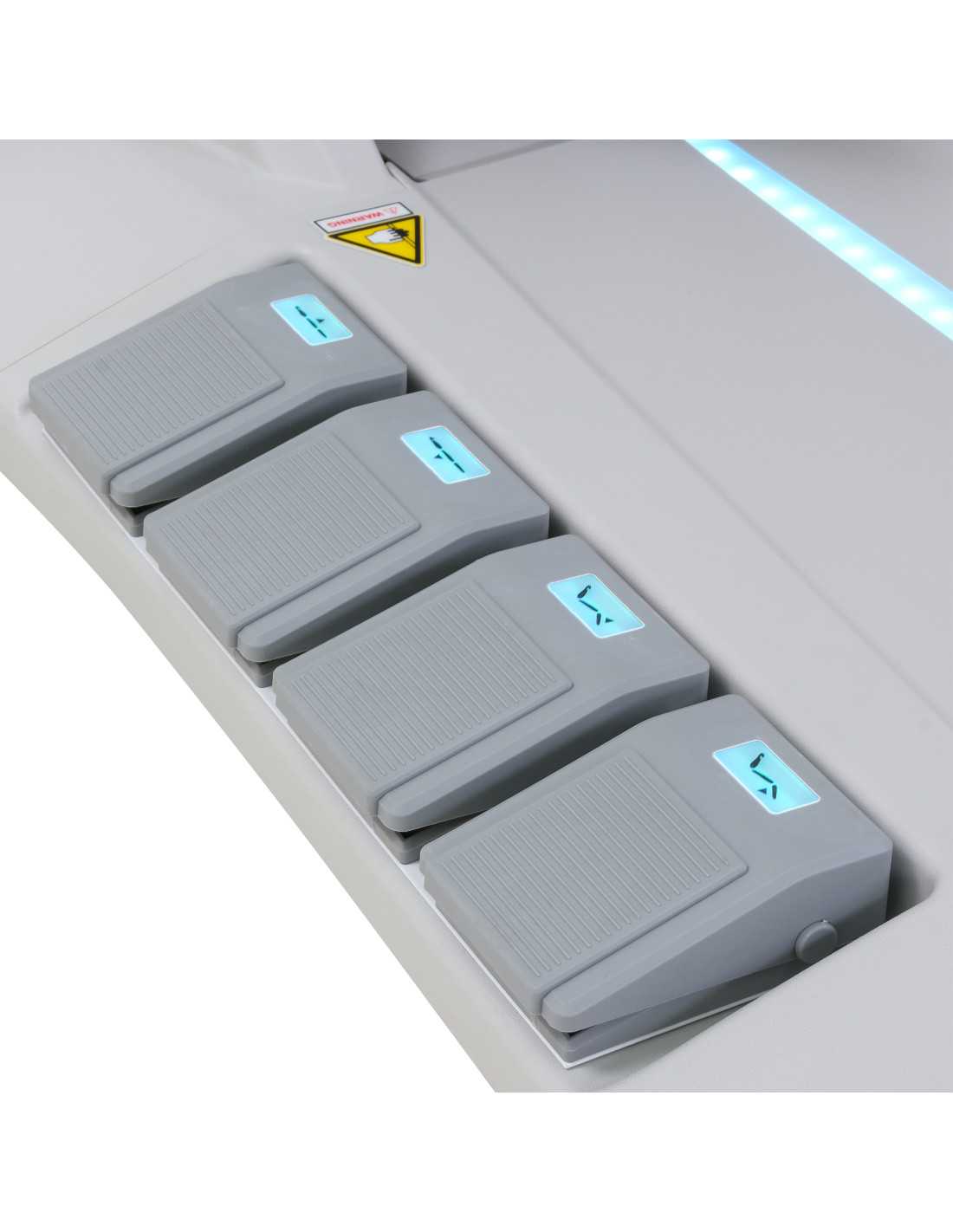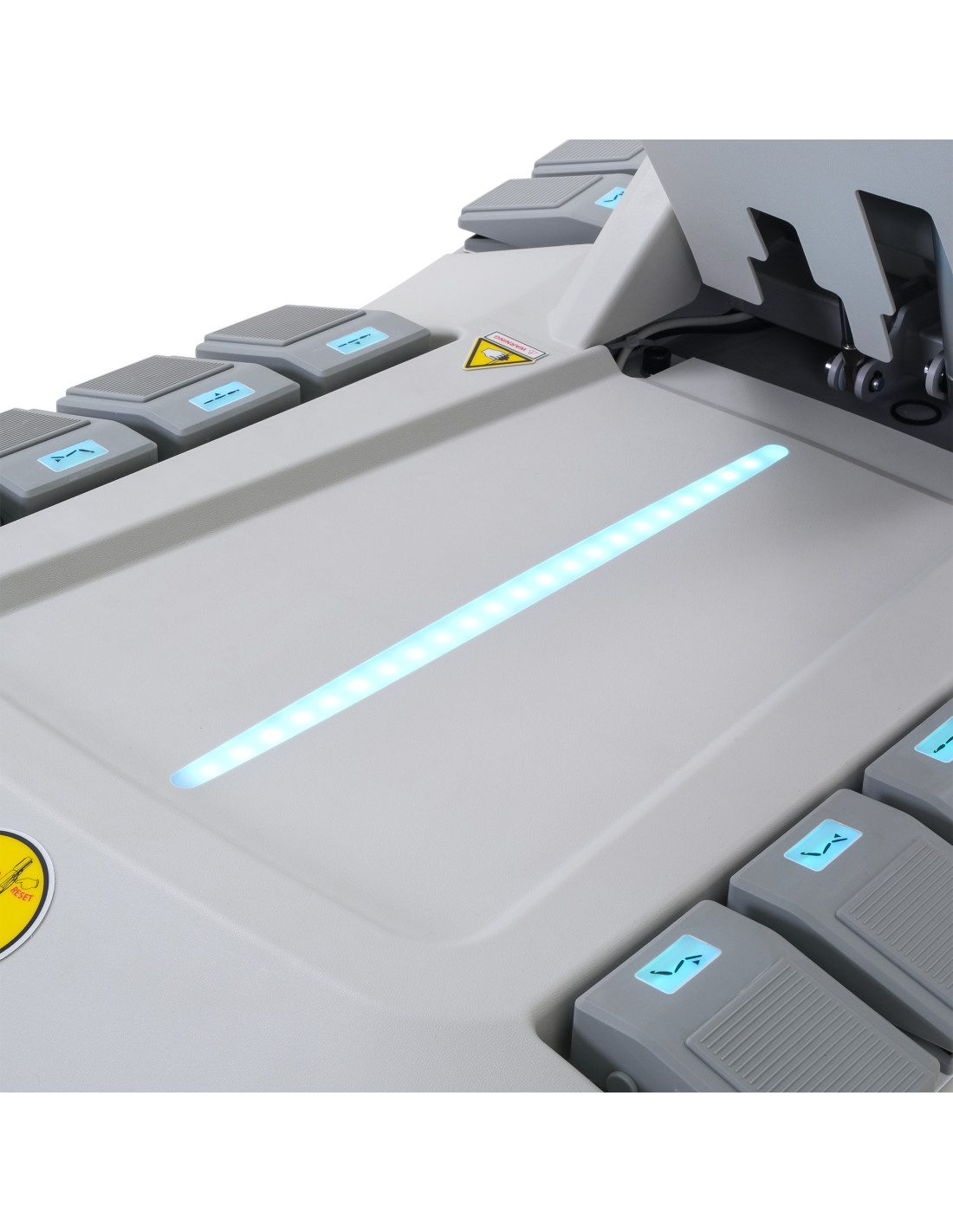 Nowoczesny design dopełnia podświetlenie LED podstawy i paneli sterujących.