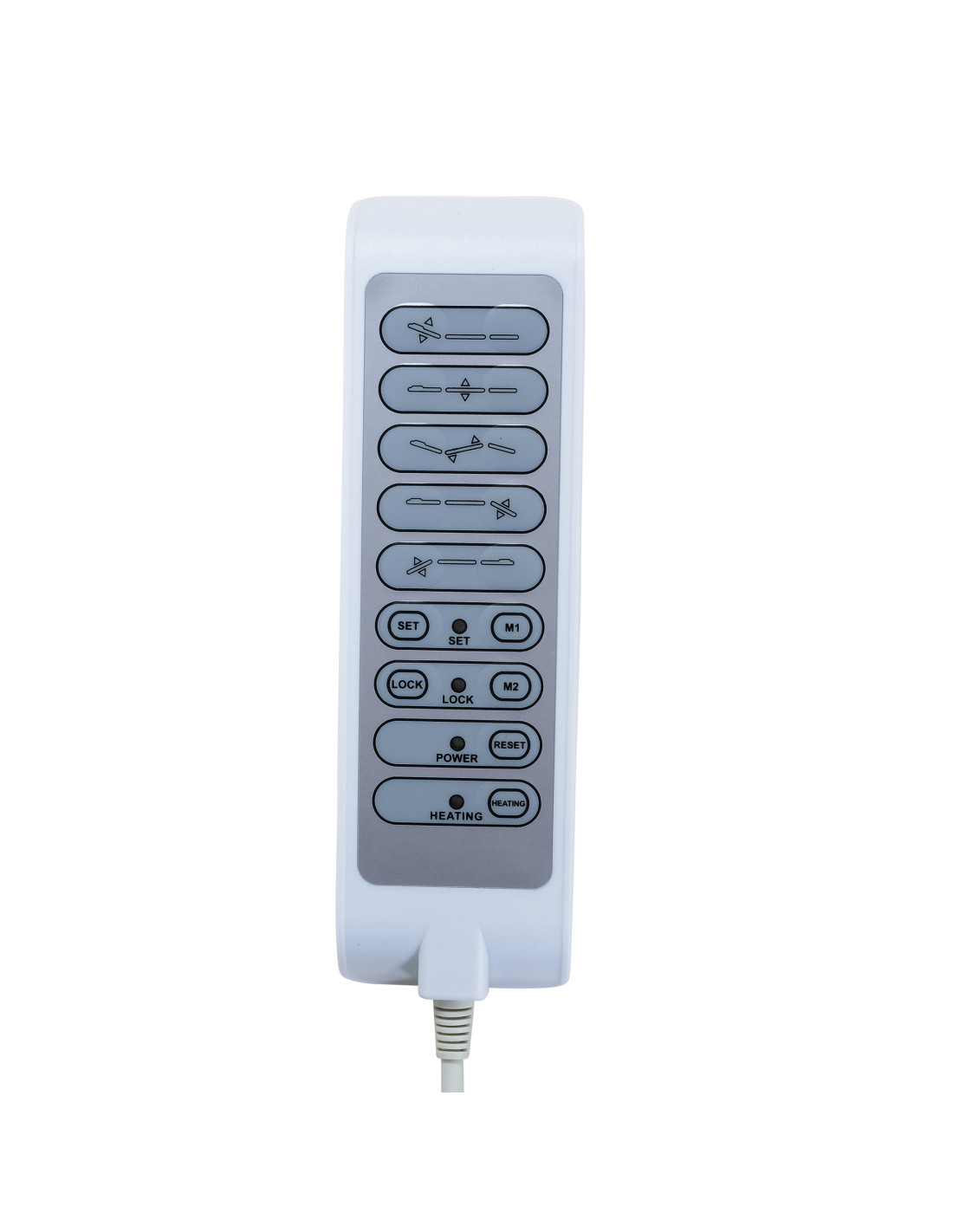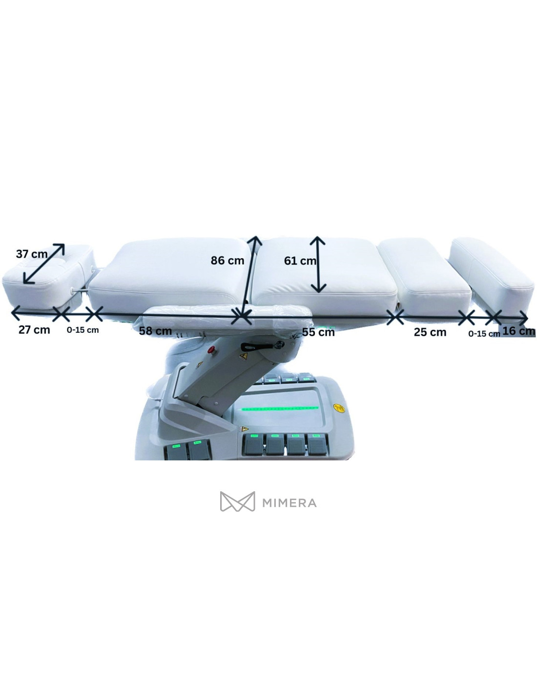 Wyposażony w 4 ciche silniki elektryczne, umożliwia płynną regulację wysokości, oparcia, siedziska i części nożnej. Obrót ±120° gwarantuje pełną elastyczność.