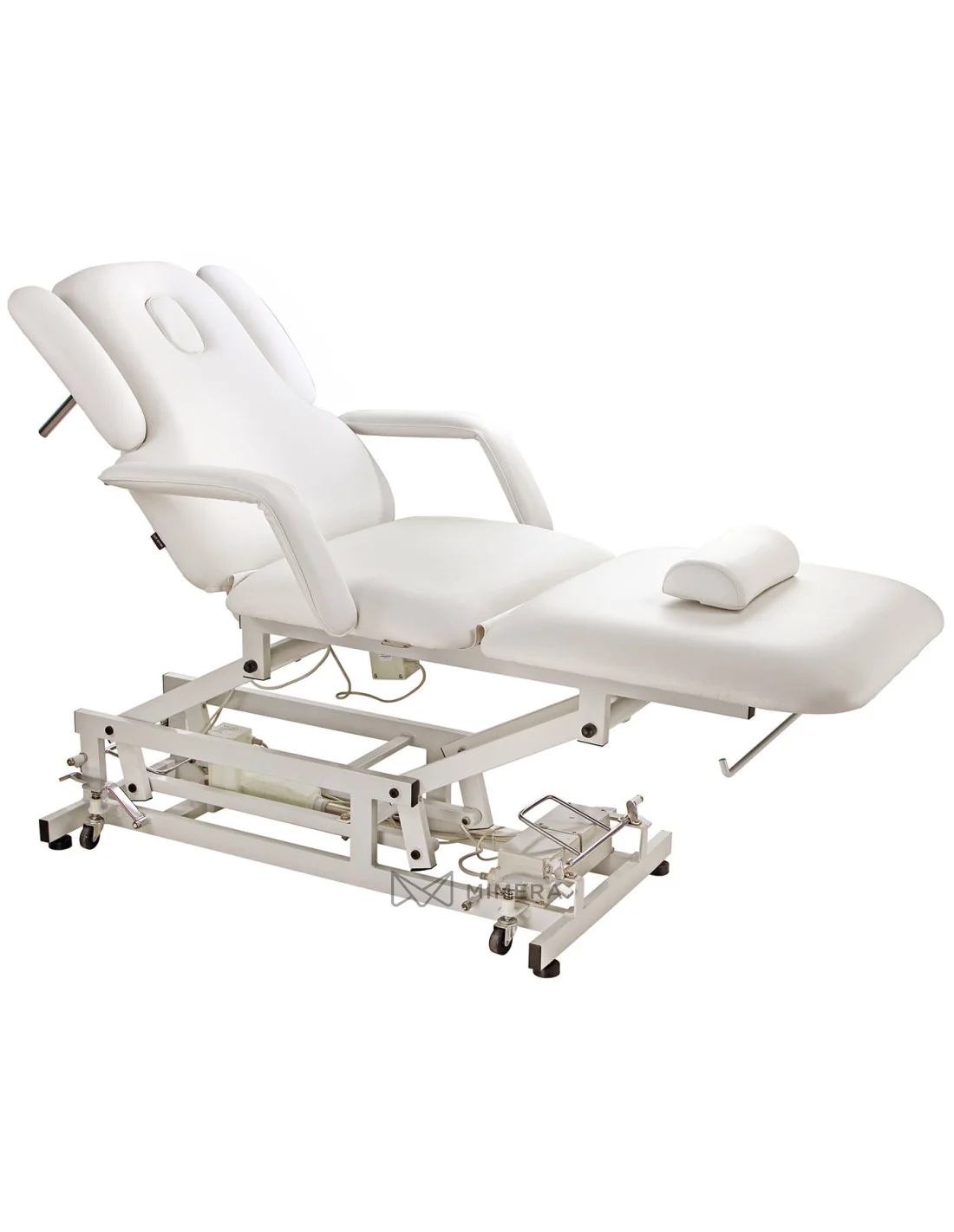 Komfortné elektrické fyzioterapeutické lehátko má univerzálne využitie, vhodné aj ako kozmetické lehátko. 3 výkonné motory ovládajú nastavenie výšky, chrbtovej časti a sklonu centrálnej časti - sedacej a nožnej. Elektrické ovládanie je prostredníctvom ručného ovládača, ktorý je súčasťou balenia. Vaši zákazníci ocenia veľmi nízku výšku lehátka pri nasadaní a nadmieru pohodlné polyuretánové čalúnenie, ktoré sa dá jednoducho čistiť. Sedadlo vyniká aj maximálnou možnou výškou. Kovový rám s kolieskami umožňuje jednoduchý presun v rámci miestnosti.