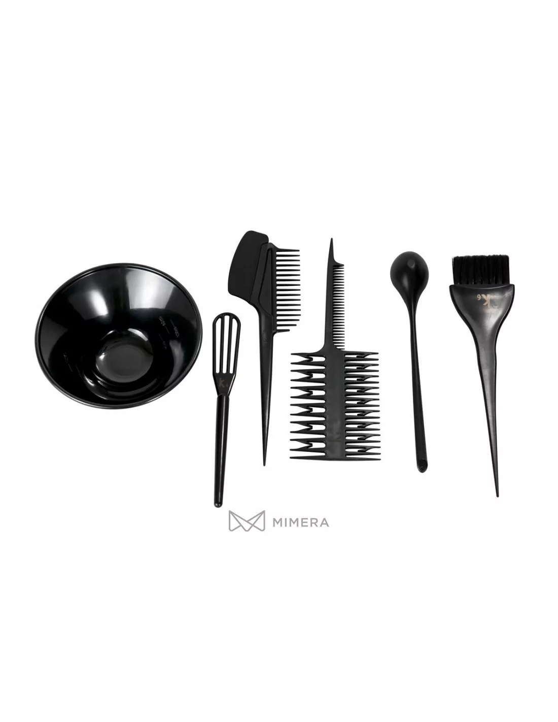 Set obsahuje misky, odmernú lyžicu, metličku, štetec, šetec s hrebeňom a obojstraný hrebeň.