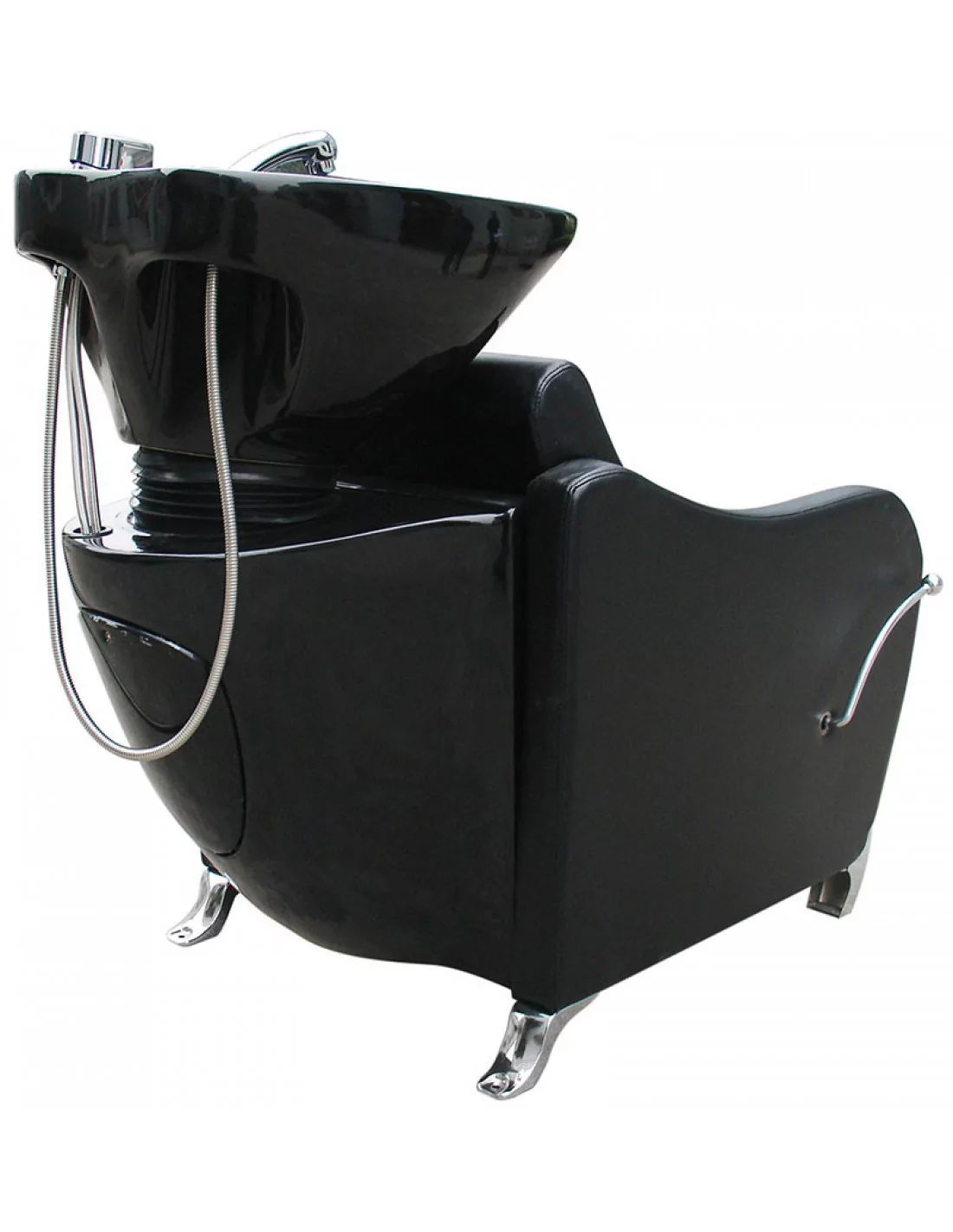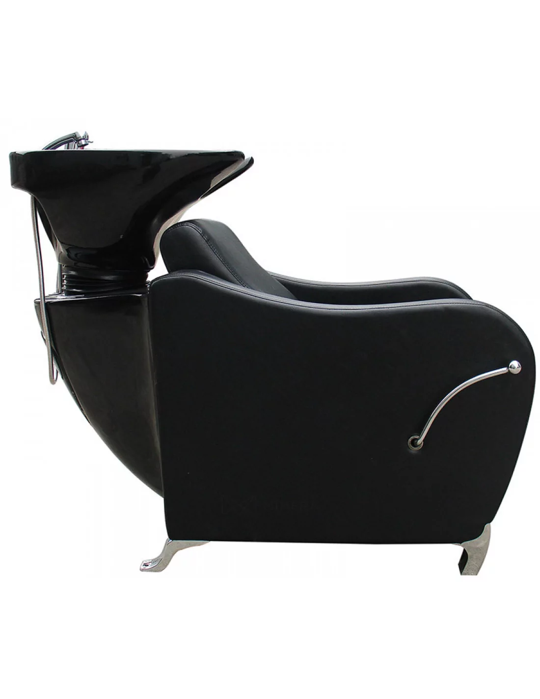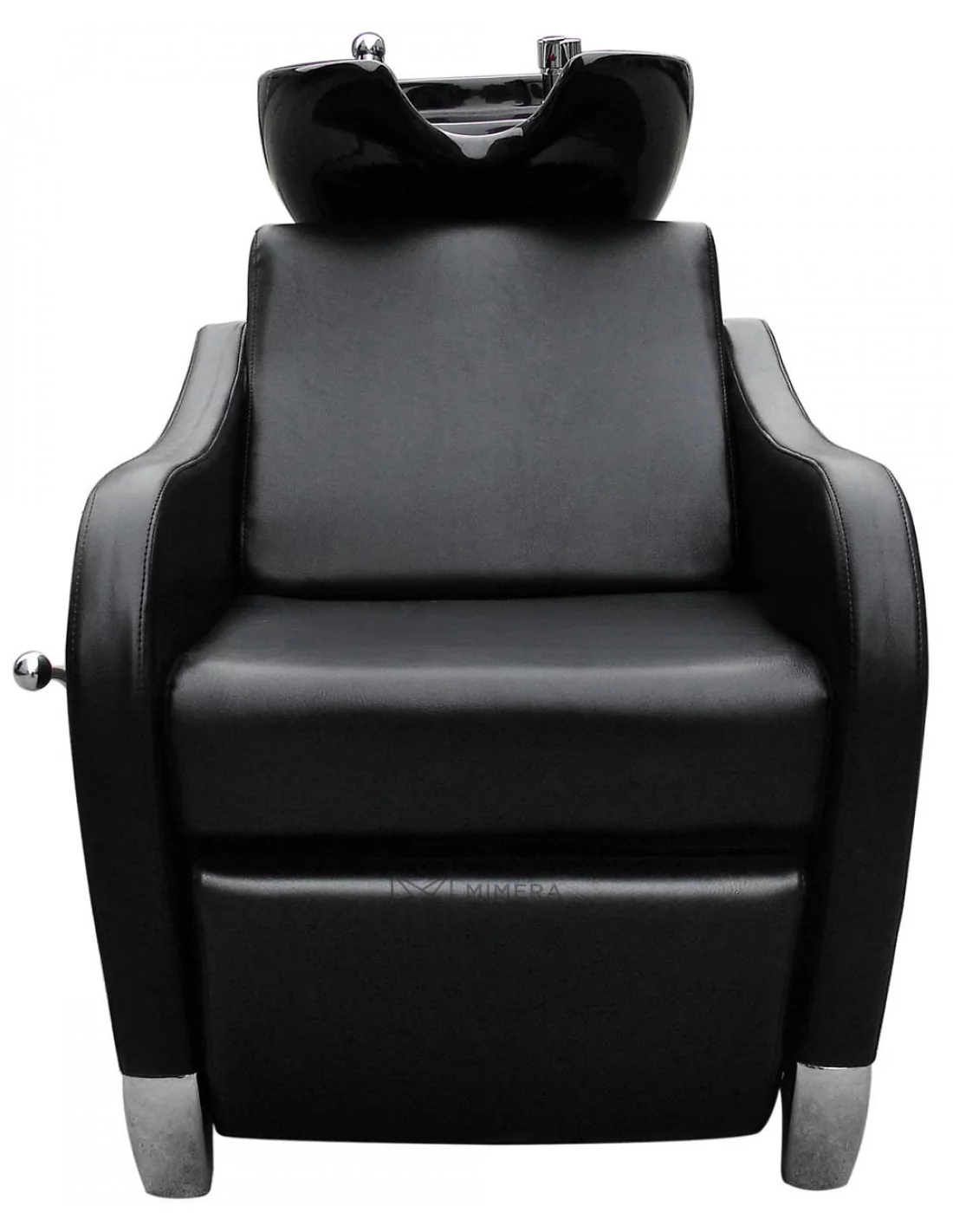 Komfortný umývací box v robustnom štýle s hlbokým keramickým umývadlom, kovovými nohami a čalúnenými opierkami na ruky. Sedadlo je mäkké a pohodlné. Ideálny pre rušné kadernícke salóny alebo holičstvá.