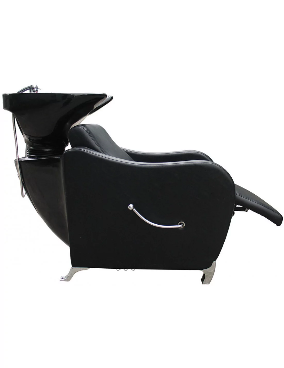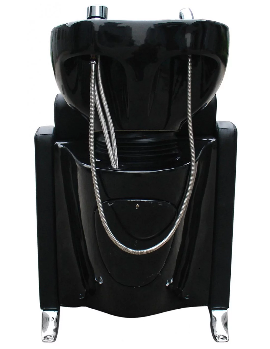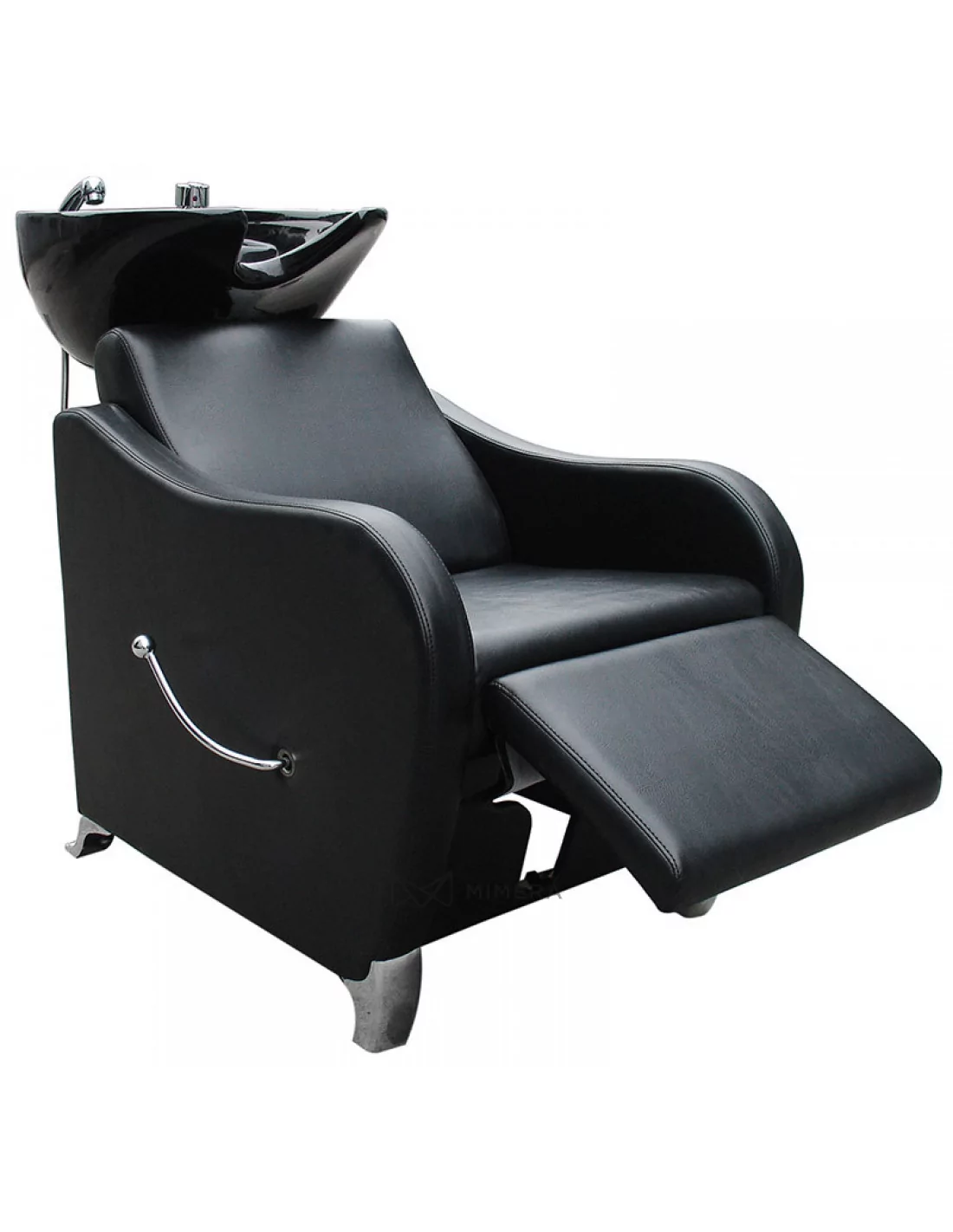 Komfortný umývací box v robustnom štýle s hlbokým keramickým umývadlom, kovovými nohami a čalúnenými opierkami na ruky. Sedadlo je mäkké a pohodlné. Ideálny pre rušné kadernícke salóny alebo holičstvá.