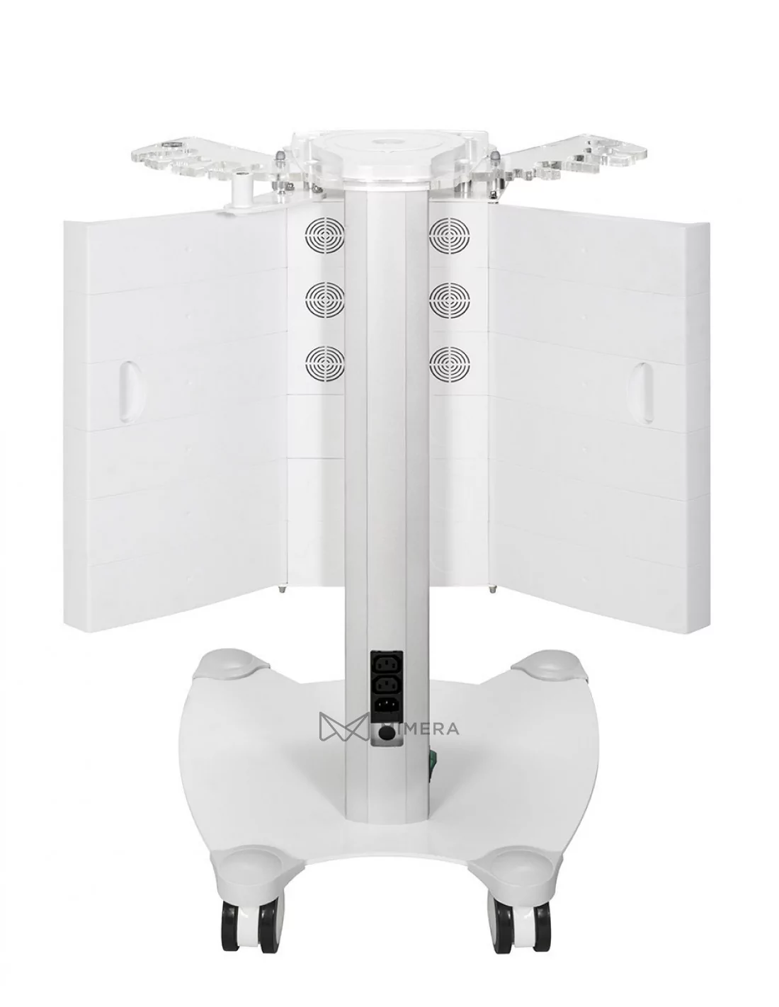 Zadná časť stojana disponuje elektrickou zástrčkou na napájací kábel a 2 elektrickými zásuvkami pre kozmetické prístroje.
