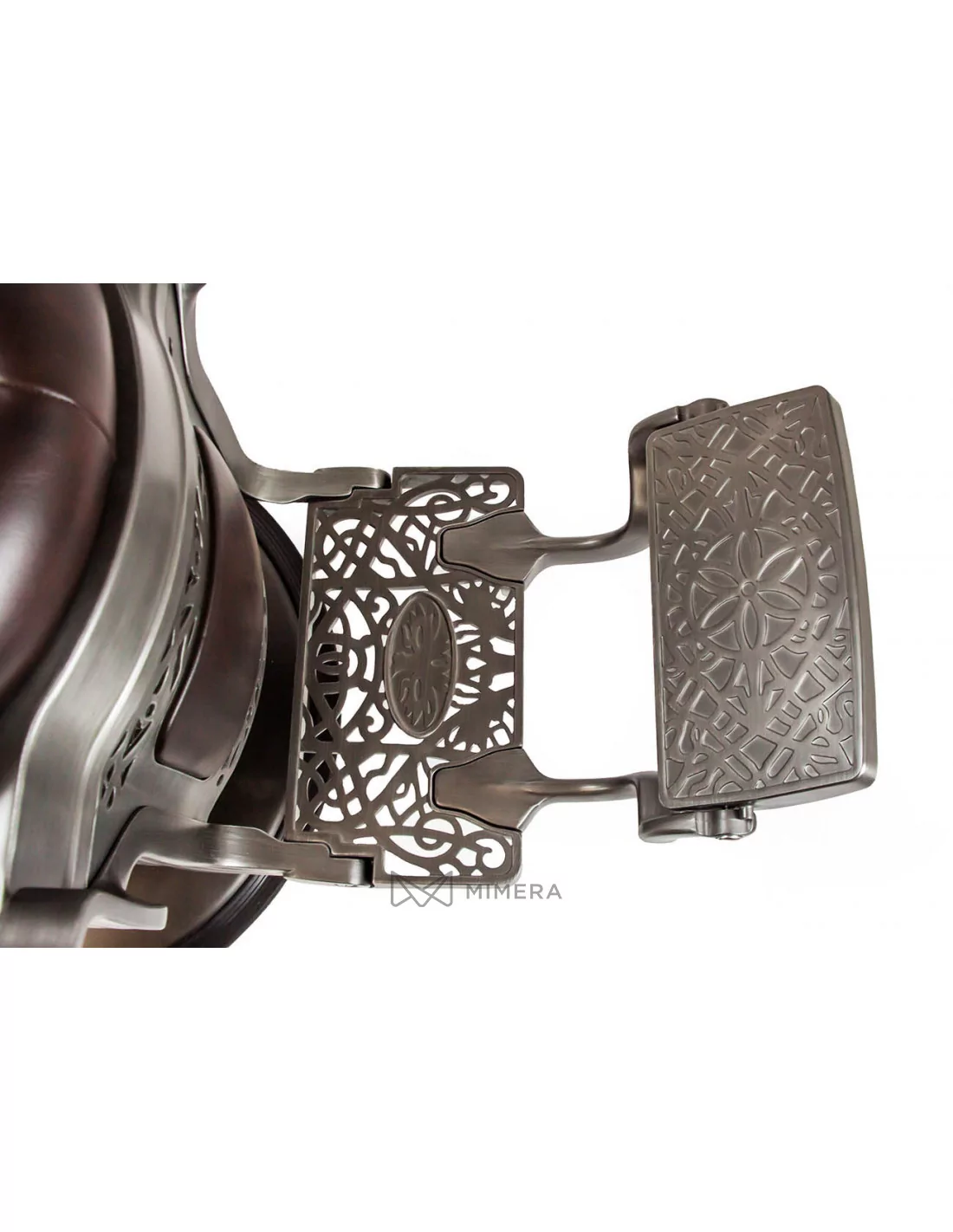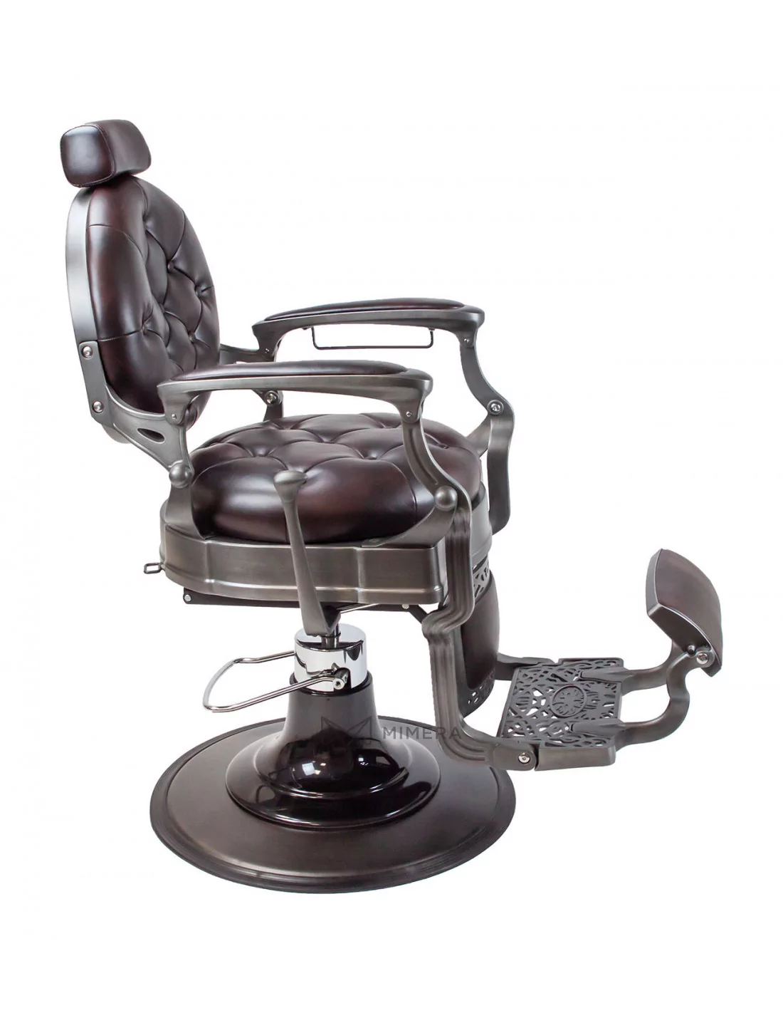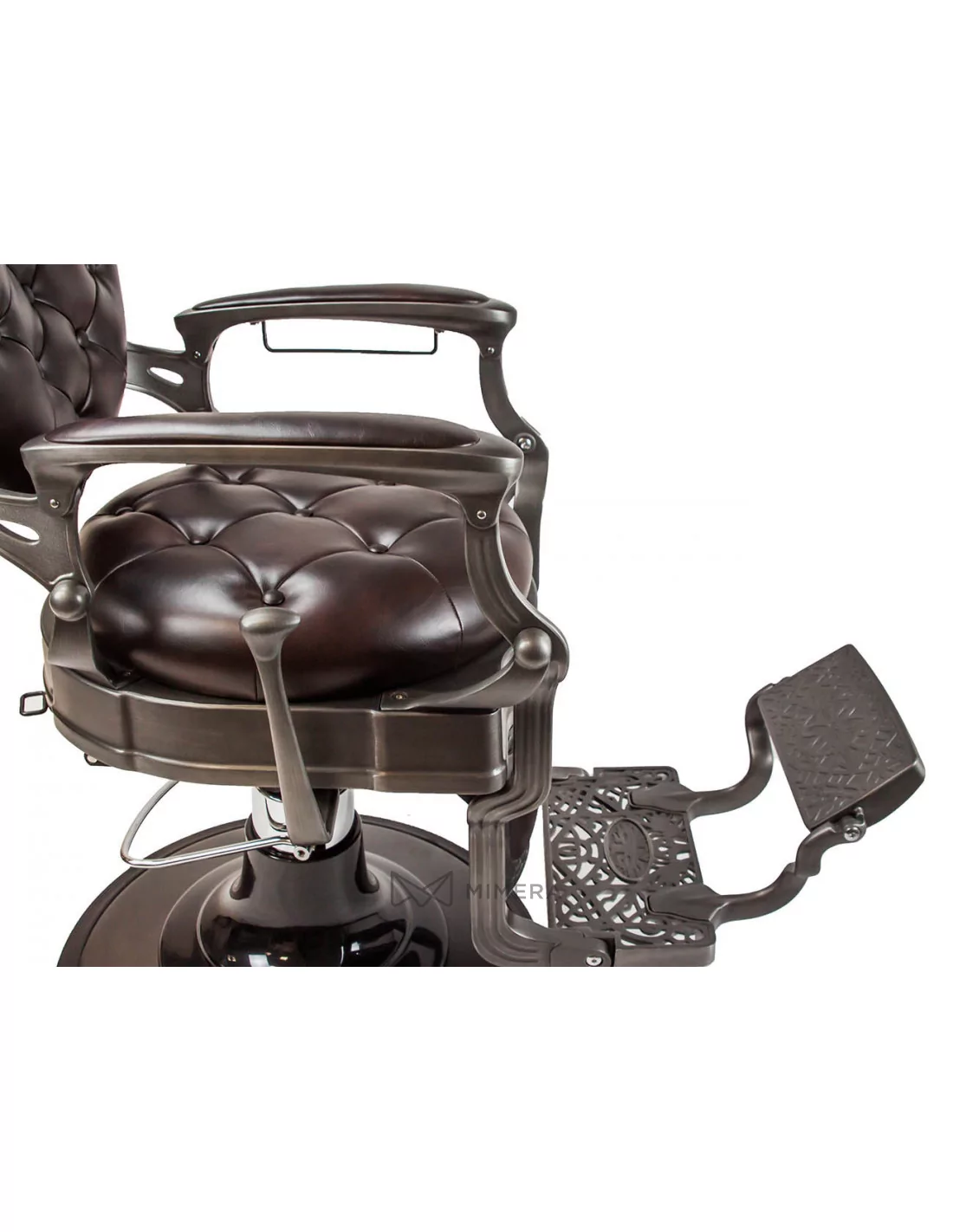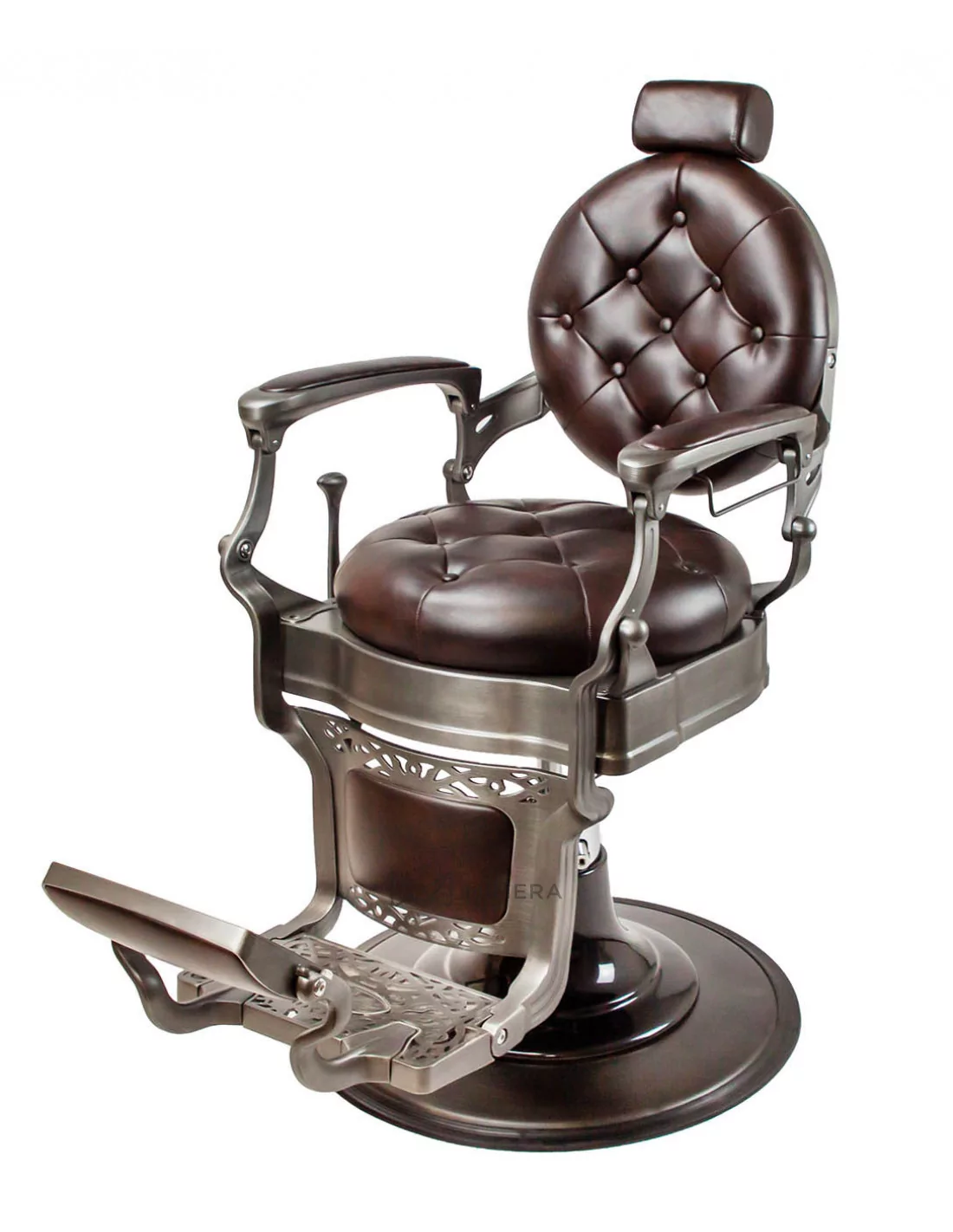 RETRO barber kreslo MONET je majstrovské dielo. Jeho masívne telo z nehrdzavejúcej ocele je podporené veľkou kruhovou základňou vďaka ktorej je mimoriadne stabilné a dobre vyvážené.