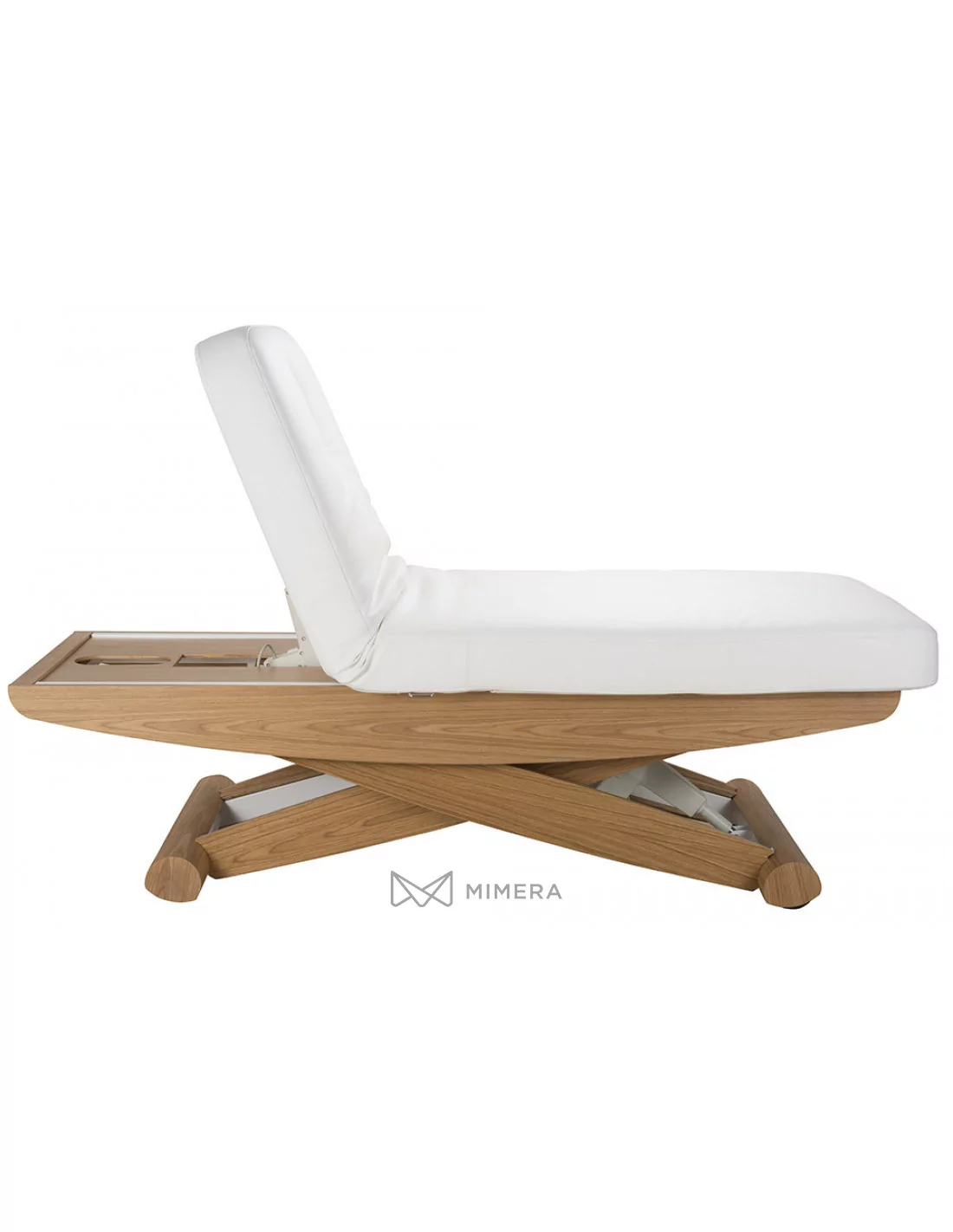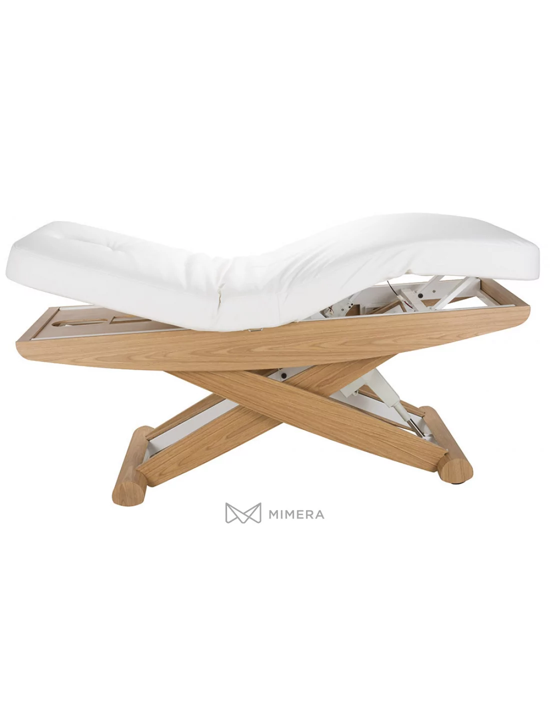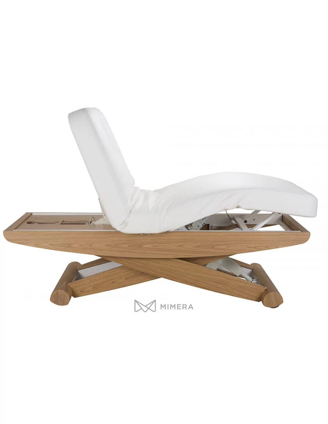 Robustný kovový rám s povrchovým obložením prírodného dreva má v jednej časti podstavy integrované kolieska, čo uľahčuje pohodlnú manipuláciu lehátkom v prípade potreby. Komfortné PU polstrovanie v prevedení mikrokože vysokej kvality nekladie vysoké nároky na údržbu. Lehátko je možné zaťažiť do 175kg.