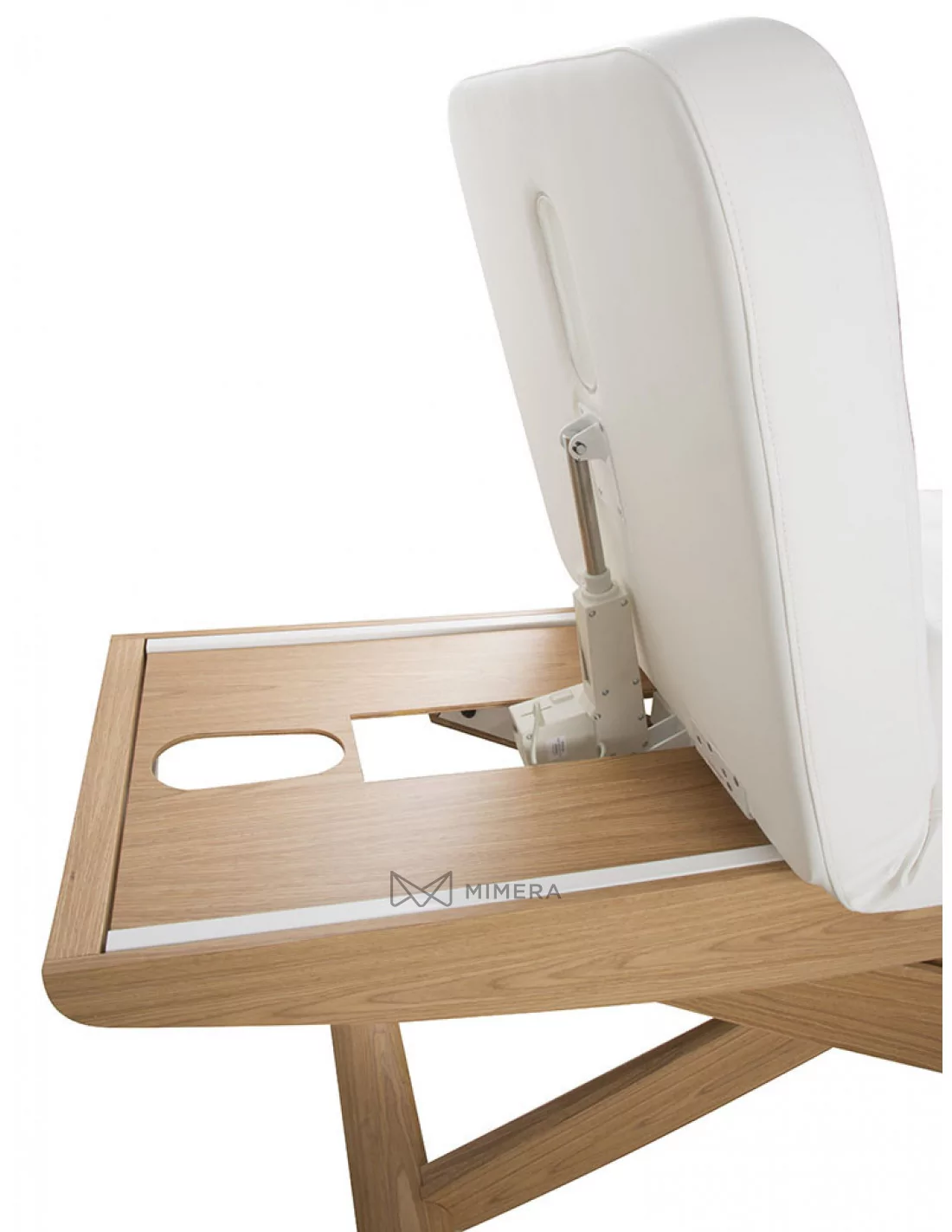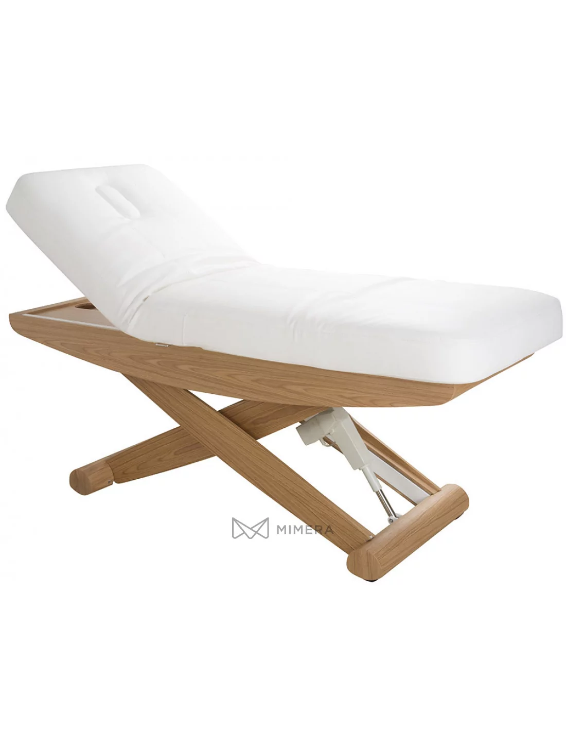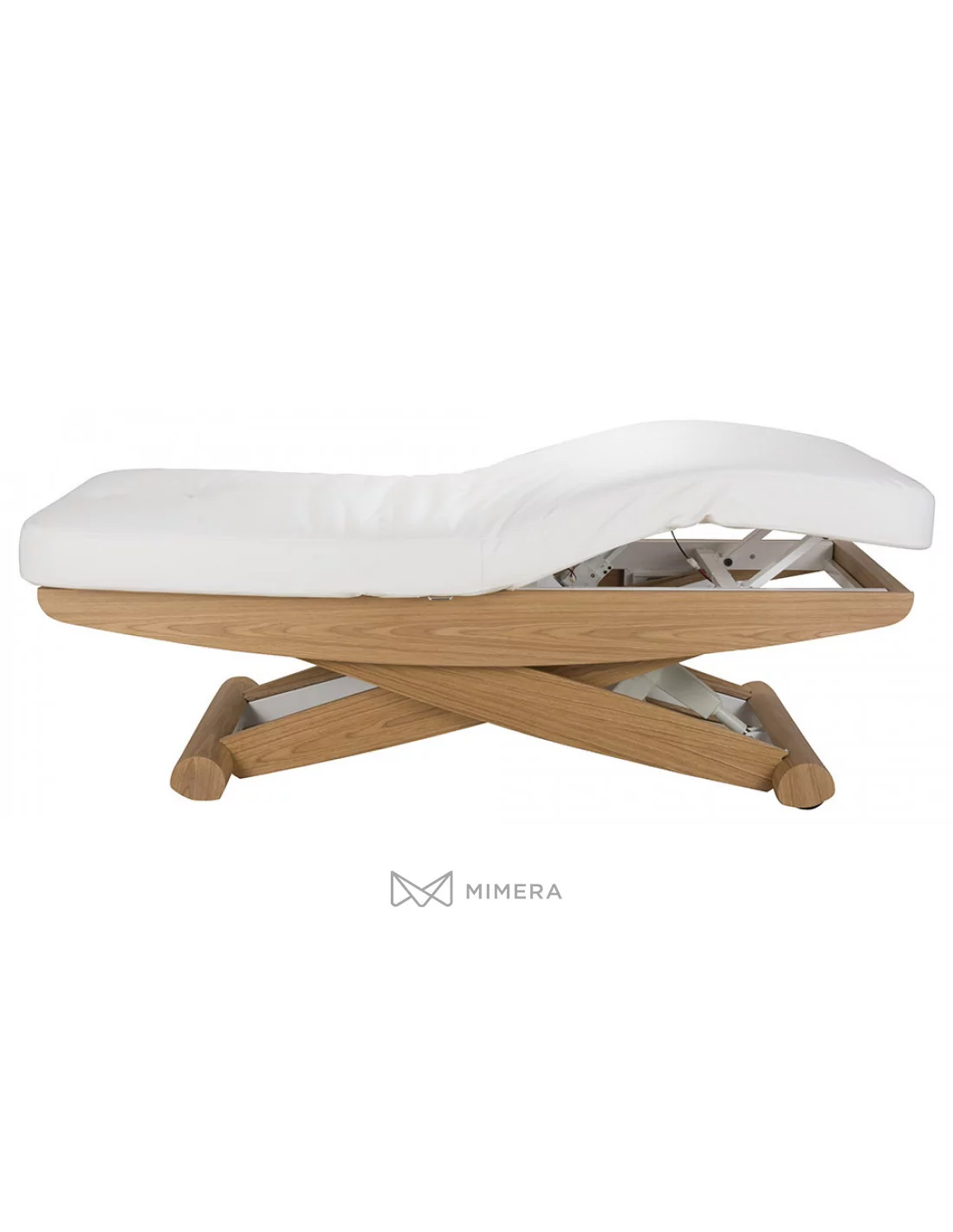 Robustný kovový rám s povrchovým obložením prírodného dreva má v jednej časti podstavy integrované kolieska, čo uľahčuje pohodlnú manipuláciu lehátkom v prípade potreby. Komfortné PU polstrovanie v prevedení mikrokože vysokej kvality nekladie vysoké nároky na údržbu. Lehátko je možné zaťažiť do 175kg.